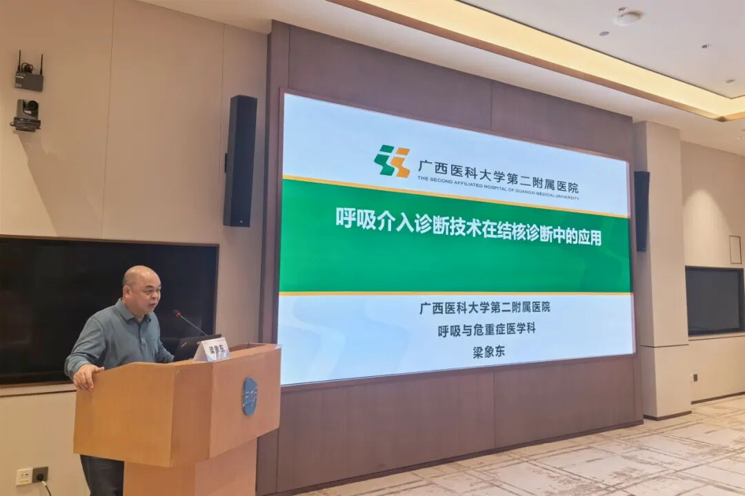 ▲广西医科大学第二附属医院呼吸与危重症医学科副主任梁象东作《呼吸介入诊断技术在结核诊断中的应用》专题报告。