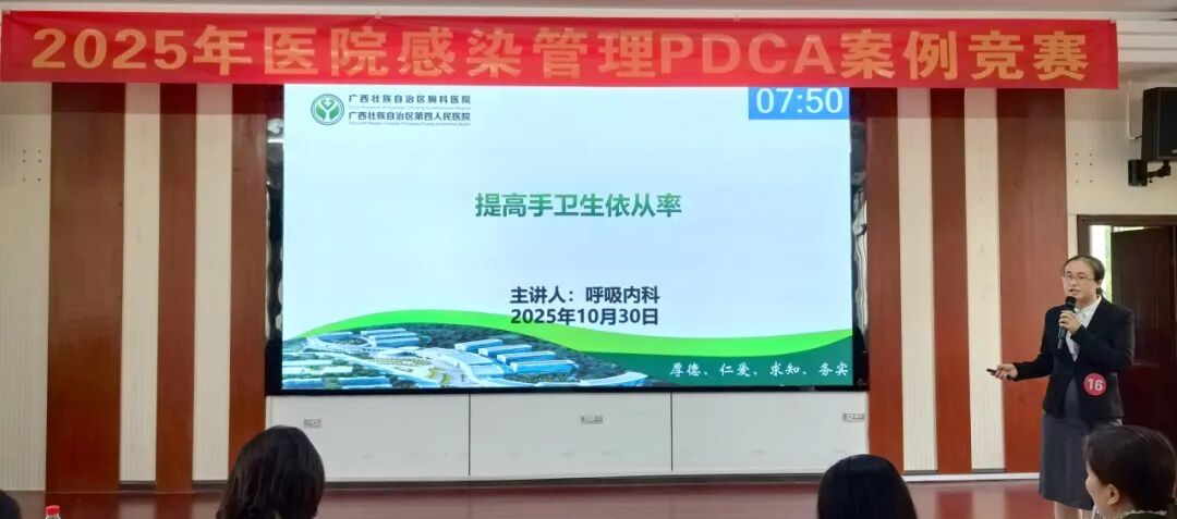 为深化医院感染管理质量持续改进工作,推动PDCA循环在院感防控领域的创新实践与规范应用,全面提升医务人员运用质量管理工具开展医院感染管理工作的专业能力,近日,广西胸科医院开展2025年医院感染管理PDCA案例竞赛成果展示活动。