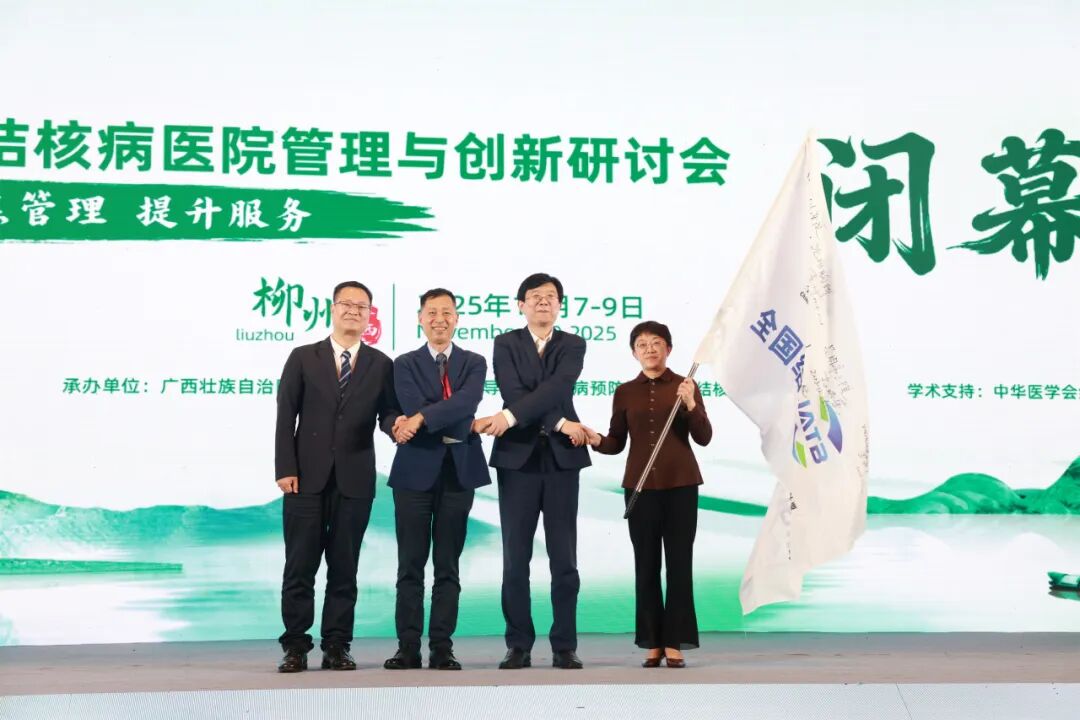 创新联盟理事长李亮、广西胸科医院党委书记唐际富、山东省公共卫生临床中心主任刘清明和青岛市公共卫生临床中心副主任王淼分别代表主办单位、2025年会议承办单位和2026年会议承办单位参加了会旗交接仪式。
