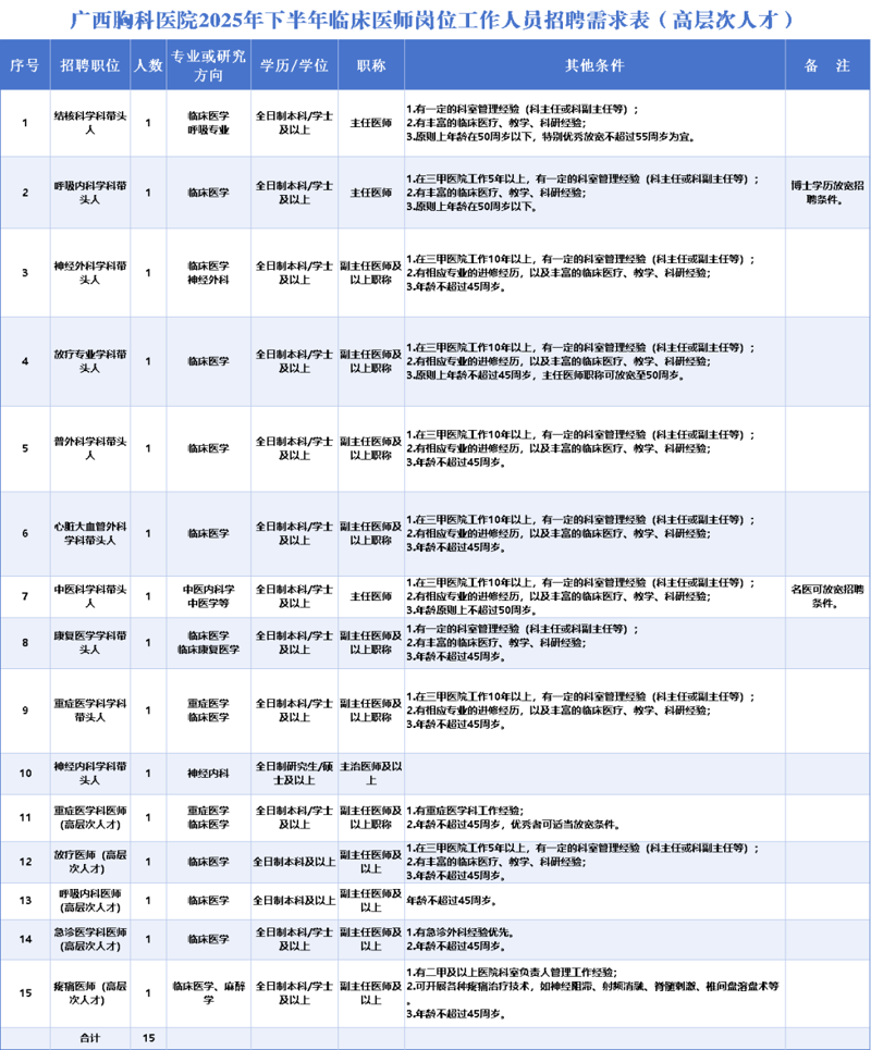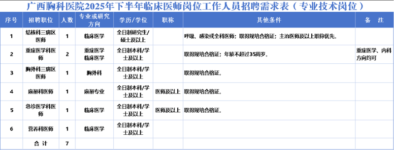 ▲附件1:广西胸科医院2025年下半年临床医师岗位工作人员招聘报名表。(扫一扫二维码下载表格)