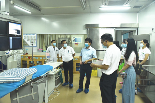 ▲我院胸痛中心工作人员认真听取专家组提出的意见和建议