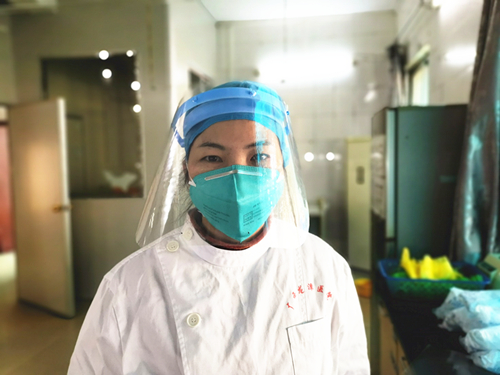 广西壮族自治区龙潭医院“新型冠状病毒隔离病区”的护理人员在一次性防护面屏缺少、供货不上的情况下,不等不靠,自己动手制作一次性防护面屏,为一线医务人员防护提供了保障。