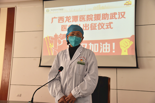 1月27日上午,自治区卫生健康委吹响了集结的号角,援助湖北的广西医疗队将在今天驰援武汉,广西壮族自治区龙潭医院在举行了简单而隆重的出征仪式之后将三位最美逆行者送上了征途!党委书记唐海宁、院长刘存旭及全院中层以上领导干部参加仪式。