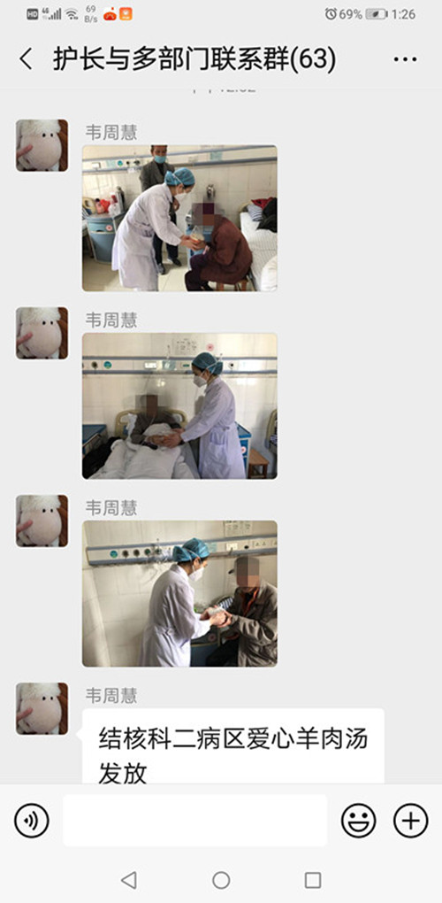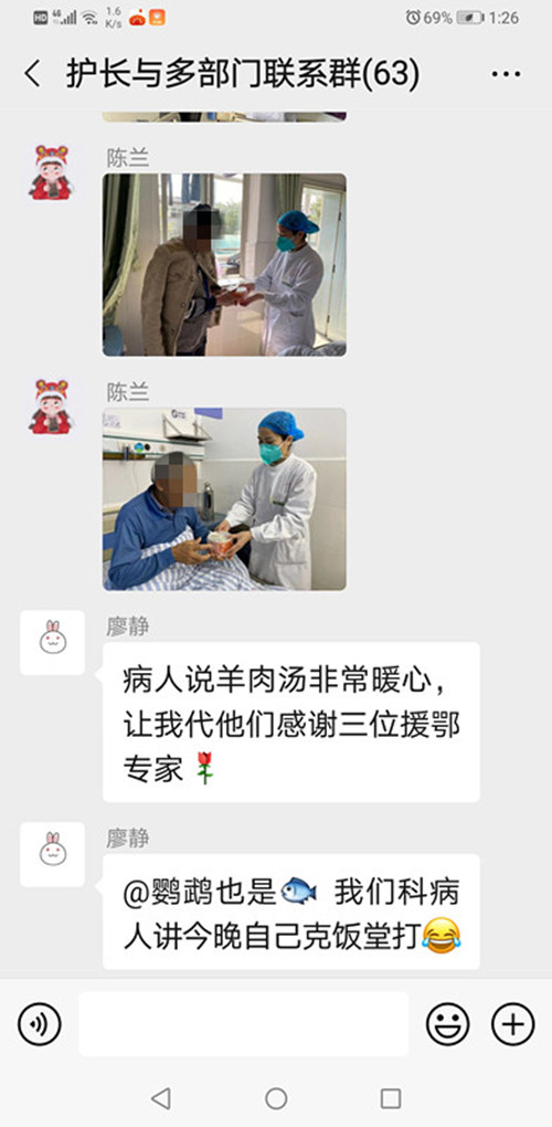 寒冬时节,羊肉飘香,温暖医患的心。当抗疫医疗队员和护理工作人员将一碗碗热乎乎的营养爱心汤送给患者们的时候,他们都表示了由衷的感谢。在一次次的爱心传递中,医护人员和患者共同分享着温暖和感动。