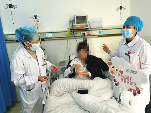 跨越万水千山而来的羊肉怎么吃?想想就让人嘴馋和期待。三位队员坐在一起商量,他们说,这份礼物是友邻国和社会对我们的关心,我们也应该将受这份温暖传递给需要帮助的住院患者。于是他们决定将全部羊肉拿出来,委托食堂制成营养温补的爱心羊肉汤,送给困难及年长的住院患者共同分享。