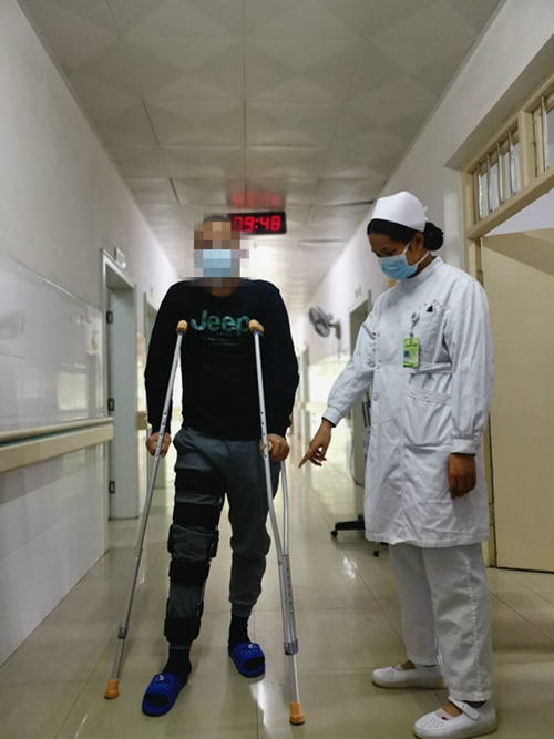 术后第一天黄先生在医生指导下进行股四头肌、直腿抬高等功能锻炼,并在膝关节支具的保护下,循序渐进的进行膝关节屈伸,直至下床行走及恢复运动。