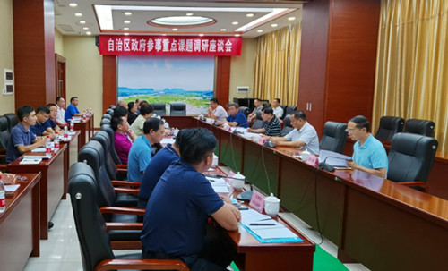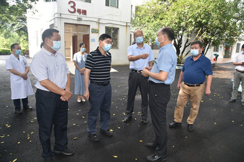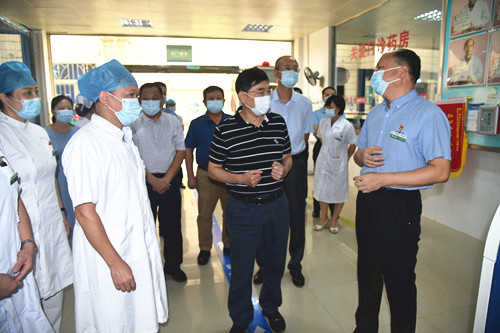 8月26日上午,自治区人民政府参事韦波(原自治区食药监管局局长)率自治区重点课题调研组朱华、周文力等一行五人来到广西龙潭医院进行急性传染病防治体系建设调研。市卫生健康委主任、党组书记林卫,广西龙潭医院院长刘存旭、副院长唐际富、总会计师朱鲜花等医院相关负责人陪同调研。