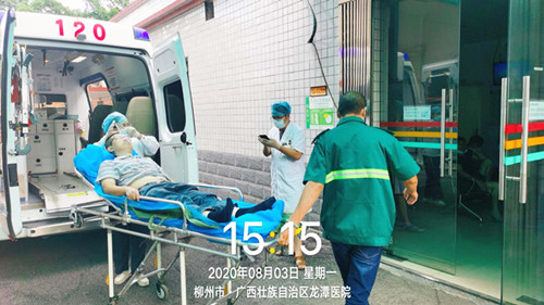 8月3日14:55我院急诊科接到120指令,柳石路嘉汇龙潭小区有一位胸痛病人急需救治。急诊科接到指令后快速反应,不到3分钟医务人员搭乘急救车呼啸而出。出车4分钟后救护车赶到现场,患者吴先生是一名年约40岁的中(青)年男性,自诉平时身体健康,近日因为工作较忙,中午在家整理材料,突感胸闷不适,伴随有胸部隐痛和全身出汗约半小时。急诊科张琪医生赶紧给病人进行检查,发现病人已出现全身大汗淋漓、面色苍白、血压降低等休克体征,护理人员立即遵照医嘱给予患者吸氧、心电监护、开通静脉通道稳定患者生命体征,同时张医生给予患者急查心电图并通过微信上传至“龙潭医院胸痛中心群”进行远程会诊,胸痛中心专家组的医务科科长吴吉顺、心血管内科主任唐国林和急诊科主任张庆团根据患者当时症状和心电图表现迅速诊断患者为“超早期急性心肌梗死”,建议立即返院行急诊介入治疗。