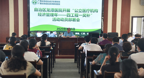 为更好地满足人民群众日益增长的医疗服务需求,根据自治区卫健委、中医药管理局《关于印发“公立医疗机构经济管理年—四工程一奖补”活动实施方案的通知》要求,2020年8月5日下午,广西龙潭医院召开“医院经济管理年”活动动员部署会,医院总会计师朱鲜花作了《“医院经济管理年”活动实施方案》的政策解读,医院院长刘存旭作动员部署讲话。