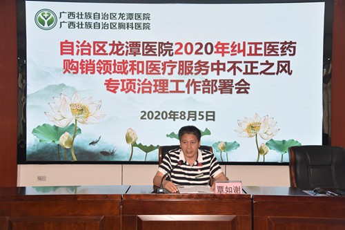 日前,广西龙潭医院召开2020年党的工作暨党风廉政建设和反腐败工作会议,学习贯彻自治区卫健委有关会议精神,全面总结2019年以来党的工作暨党风廉政建设和反腐败工作,安排部署2020年下半年工作任务。医院领导班子成员、党支部书记、中层干部近百人参加会议。