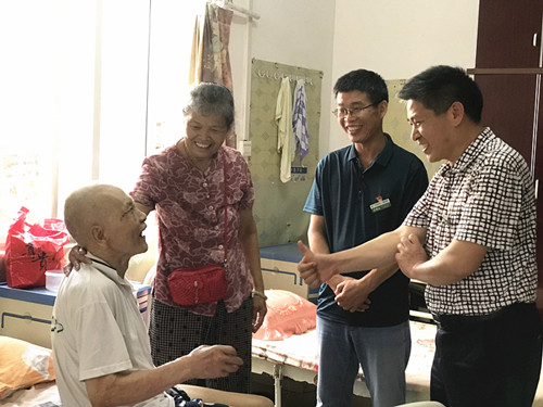在“七一”党的生日这一天,广西龙潭医院党委副书记覃如谢带队到我院老同志和困难党员家中进行走访慰问,将党组织的关怀和温暖送到党员家里也送到心里。