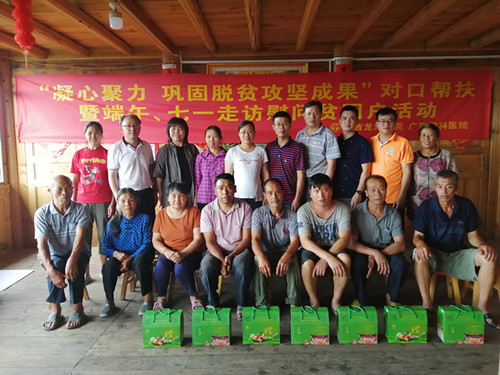 在“七一”建党节前夕,为巩固脱贫攻坚成果,广西龙潭医院党委20名党员在纪委书记江灼巧和总会计师朱鲜花的带领下,深入到龙胜县泗水乡泗水村开展了主题为“凝心聚力、巩固脱贫攻坚成果”对口帮扶“七一”走访慰问贫困户活动。