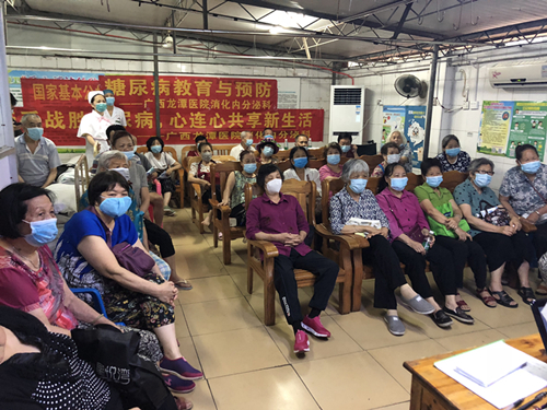 5月29日下午,广西龙潭医院消化内分泌科的党员和医护志愿者到柳州市白云社区卫生服务中心,以“手牵手战胜糖尿病,心连心共享新生活”为主题开展了公益活动,为社区居民带来了糖尿病预防和治疗的知识讲座以及义诊服务。