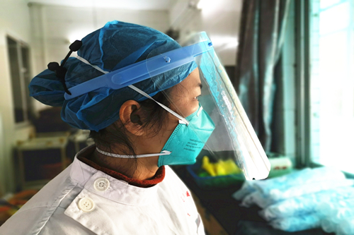 广西壮族自治区龙潭医院“新型冠状病毒隔离病区”的护理人员在一次性防护面屏缺少、供货不上的情况下,不等不靠,自己动手制作一次性防护面屏,为一线医务人员防护提供了保障。