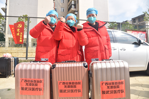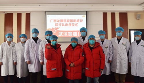 1月27日上午,自治区卫生健康委吹响了集结的号角,援助湖北的广西医疗队将在今天驰援武汉,广西壮族自治区龙潭医院在举行了简单而隆重的出征仪式之后将三位最美逆行者送上了征途!党委书记唐海宁、院长刘存旭及全院中层以上领导干部参加仪式。