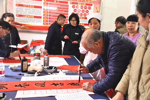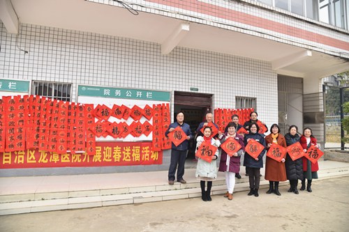 1月19日,为弘扬中华传统文化,以喜庆祥和氛围迎接2020年农历新年,自治区龙潭医院开展了“迎春送福送春联”活动。党委副书记覃如谢与一众书法爱好者现场为职工及家属书写春联和福字。