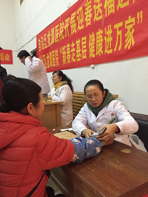 1月14日,自治区龙潭医院副院长刘爱梅率领帮扶责任人一行12人,赴龙胜县泗水村开展精准帮扶新春慰问暨“新春送福”游园活动,给贫困户送去新春祝福。