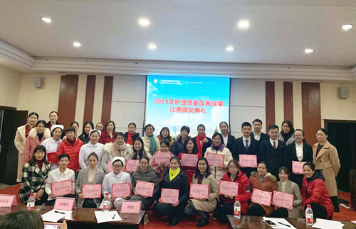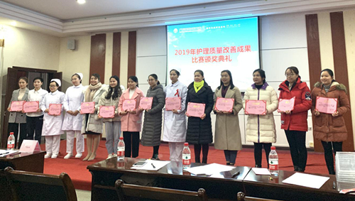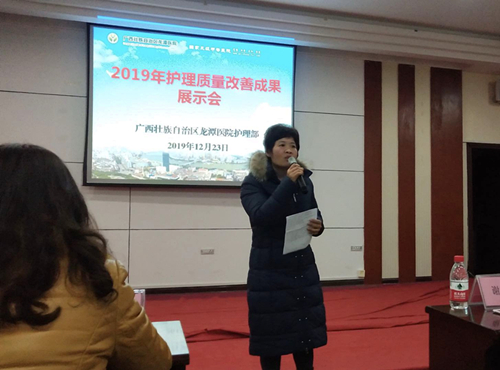 2019年12月23日下午,医院护理部在书香阁三楼会议室组织举办2019年护理质量改善成果展示比赛,交流展示我院护理质量改善成果,为进一步丰富护理专业内涵,提高全体护理人员掌握和应用品管圈、专案改善等质量管理工具及方法的能力,促进护理质量持续改进。本次比赛由护理部主任唐月璐主持,护理部副主任周倩及护理专家担任评委,各科室护士长、护理骨干、圈长及圈员代表等100多人参加了此次比赛。