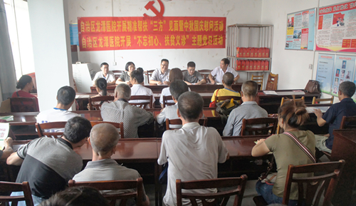 同时,我院还开展了“不忘初心、扶贫义诊”主题党日活动,“中国好医生”蓝珂和“柳州好护士”陆雪萍为村民们测血压、做检查,送医送药送健康,将健康精准扶贫工作落到实处。该活动受到了村民们的好评,大家纷纷表示,感谢自治区龙潭医院一直以来的关心关怀与支持,一定会树立信心,鼓足勇气,不等不靠,克服困难,早日脱贫,过上美好生活。