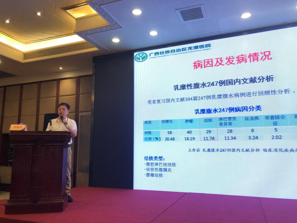 论坛汇聚了来自全国各级结核病防治机构、定点医疗机构以及其他医疗卫生机构从事结核病防治、临床诊治及相关学科的医疗及科技工作者。我院作为广西的代表,本着“学习、思考、交流、分享、成长”的培训理念,结核科主任吕康言和大外科主任张爱平分别以“结核性浆膜腔乳糜积液的诊治策略”和“肺结核合并肺癌的外科诊治的做法和经验”为题在大会上做了专题报告。两位专家用简洁的语言和详实的数据向与会者分享了广西在结核病诊治方面的先进做法和经验,得到与会者们的肯定和好评,广西水平在华南论坛上绽放风采。