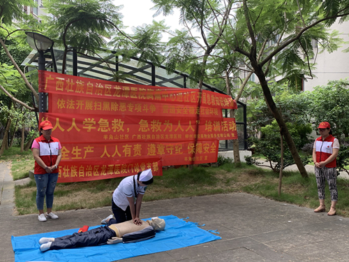 6月12日,广西龙潭医院联合羊角山社区走进畔山领秀小区内开展以“我们的节日·端午”和“人人学急救,急救为人人”为主题的志愿服务活动,该院胸痛中心的专家、急诊医学科护理团队为社区志愿者、宏基物业工作人员、居民代表等进行了急救知识培训。