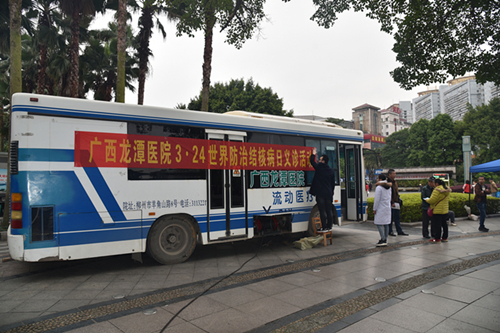 世界防治结核病日当天,由柳州市卫生健康委员会、柳州市鱼峰区人民政府、广西壮族自治区龙潭医院以及柳州市疾病预防控制中心等多家单位联合在柳州市鱼峰山公园开展了“3•24世界防治结核病日”大型义诊宣传活动。通过专家义诊、咨询、免费胸部DR拍片、测量血压、血糖、体重等形式,为市民提供结核病检查及防治知识。活动现场,志愿者通过摆放宣传展板、发放结核病防治知识宣传折页等方式,向市民讲解了结核病的疫情、特点、传播途径以及预防措施等结核病防治知识,提高公众结核病防治核心知识知晓率。