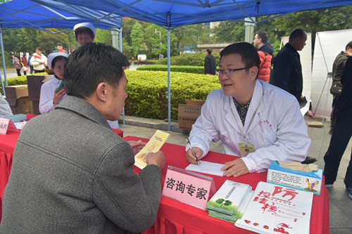 (图2 医院副院长唐际富带领医护团队和志愿者为市民提供义诊服务)