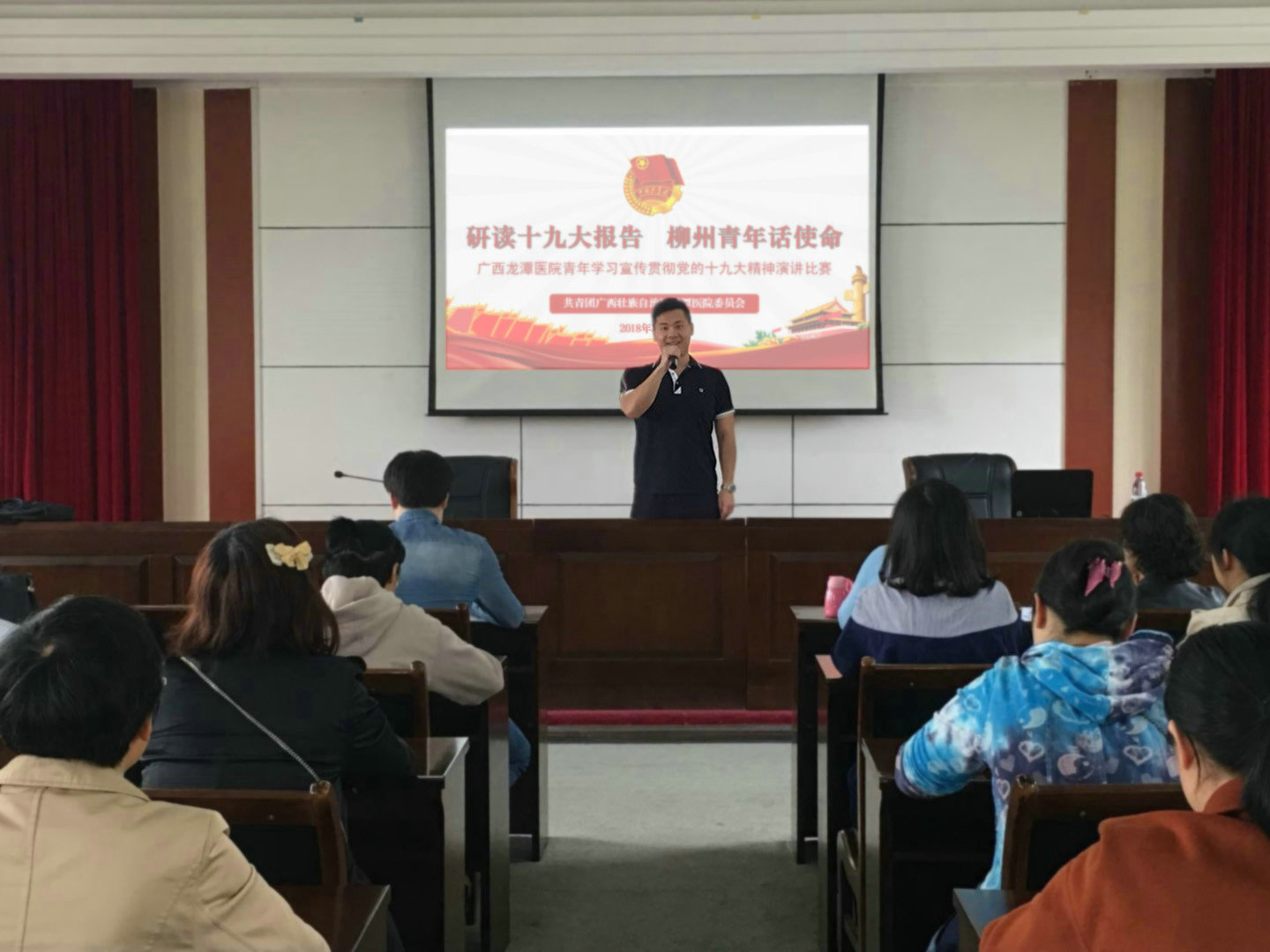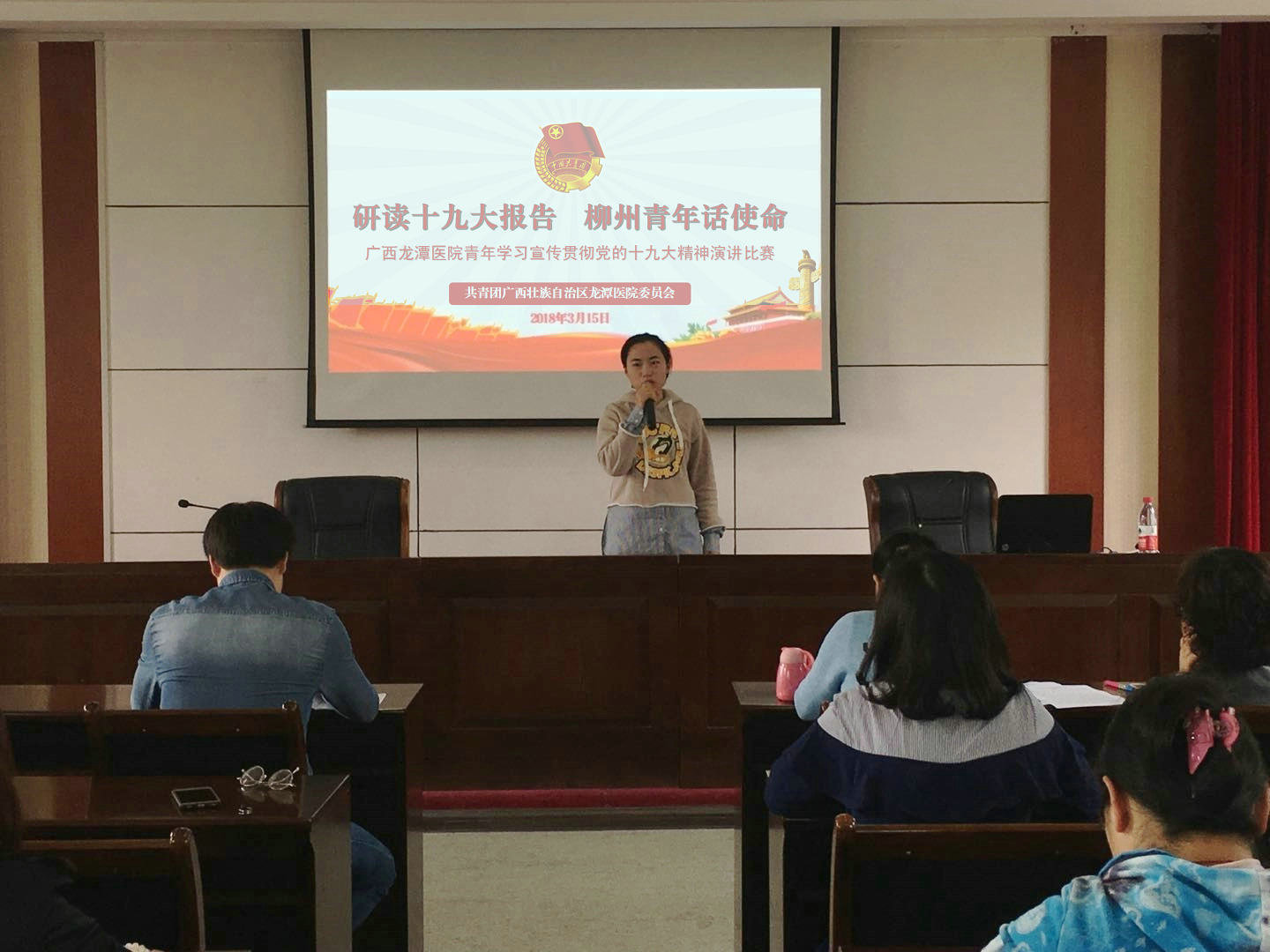 2018年3月15日,为深入学习宣传贯彻党的十九大精神,广西壮族自治区龙潭医院团委举办了“研读十九大报告 柳州青年话使命”广西龙潭医院青年学习宣传贯彻党的十九大精神演讲比赛。