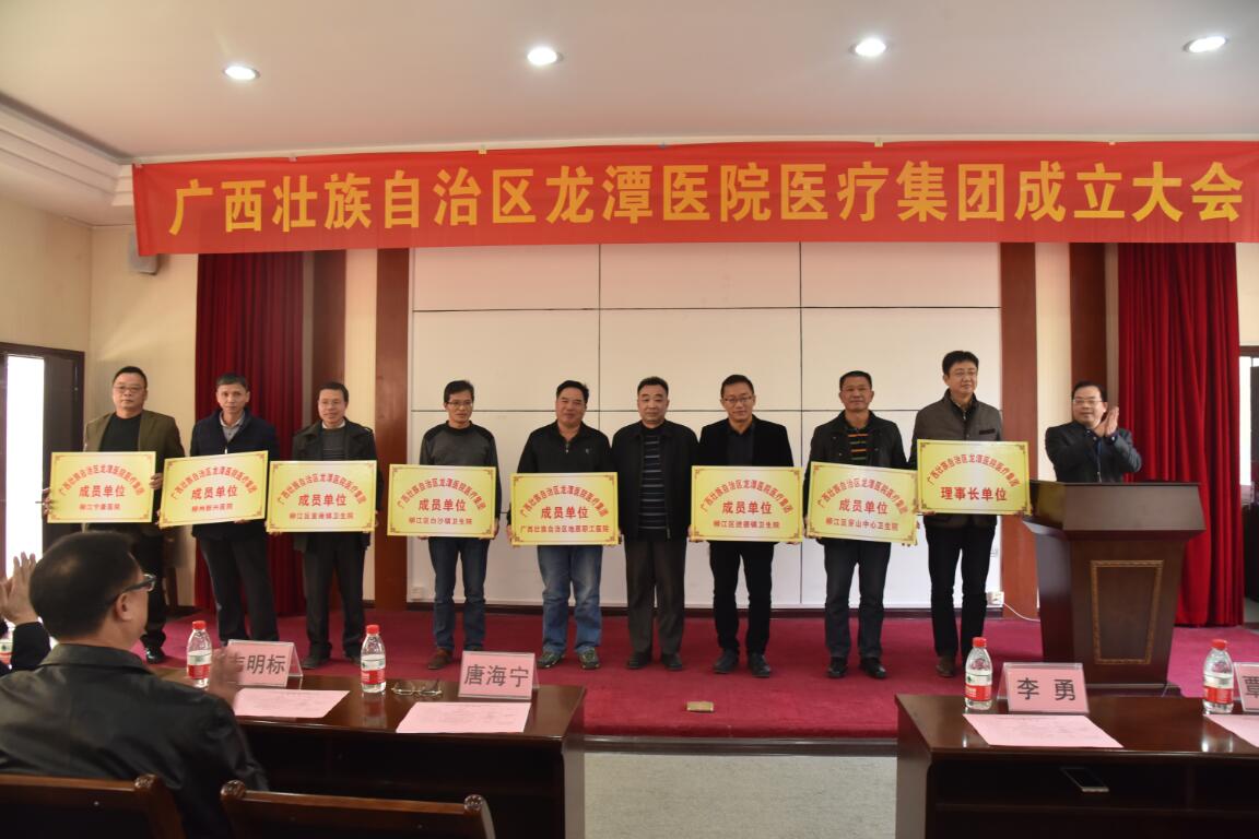 12月26日,广西壮族自治区龙潭医院医疗集团正式成立。成立大会由自治区龙潭医院副院长周兵主持,集团理事长、自治区龙潭医院院长唐海宁致辞,医院党委书记邓晓军、副院长李勇、各成员单位领导及相关人员共100余人参加。