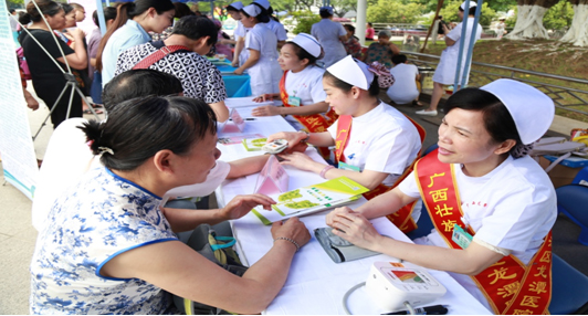5月7日,我院共派出6名护理骨干组成的服务队参加了柳州市5.12国际护士节“牵手天使,共创健康”大型户外义诊活动。我院以“结核病护理及健康指导”为此次义诊活动主题,重点宣传了结核病防治知识,展示了医院护理工作人员扎实的专科理论知识和良好的服务态度。本次义诊活动为柳州市市民免费测血压共200多人次、免费开出DR照片单子共100多人次。我院服务队以真诚的“爱心、耐心、细心、责任心”认真对待每一位群众,树立了白衣天使良好的社会形象,得到了广大市民的赞誉与好评。