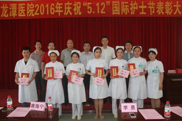 5月11日下午,广西龙潭医院2016年 “5.12”国际护士节表彰大会在书香阁三楼会议室隆重召开。医院党委书记唐海宁率全体院领导出席了表彰大会,各临床科室护士长及全院200余名护士参加了会议。