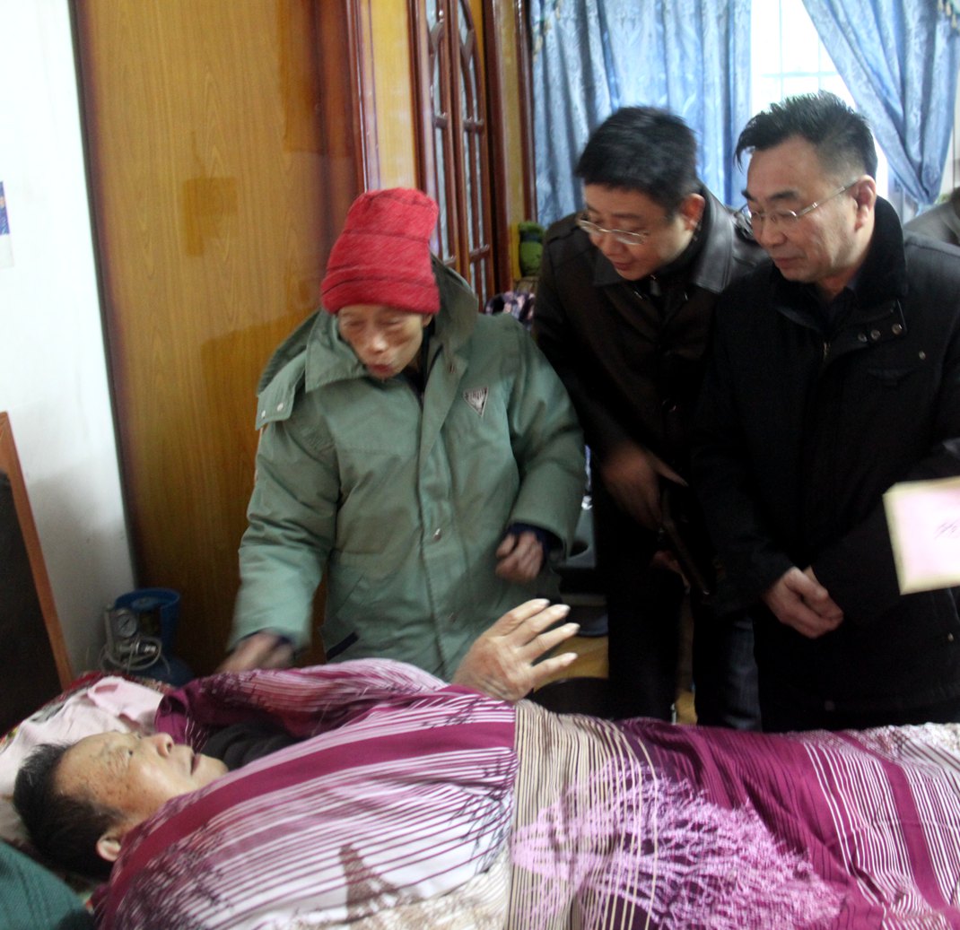 2月2日下午,我院部分领导班子成员,带领医院院办、党办、工会、离退休管理科负责人,一同慰问我院的五位离休干部。在慰问中,医院领导首先预祝他们新年快乐,希望他们保重身体,健康长寿。在慰问病卧在床的离休干部时,医院领导对照顾离休干部的家属表示感谢,同时也表示,如果他们在照顾中遇到困难,就迅速向医院有关部门反映,医院能够提供帮助的,将尽最大努力解决;在慰问住院的离休干部时,几位医院领导除了安慰离休干部和家属外,还请来主治医生,详细地询问病情,关切地了解下一步的治疗方案,其真情实意让家属和医生感动。