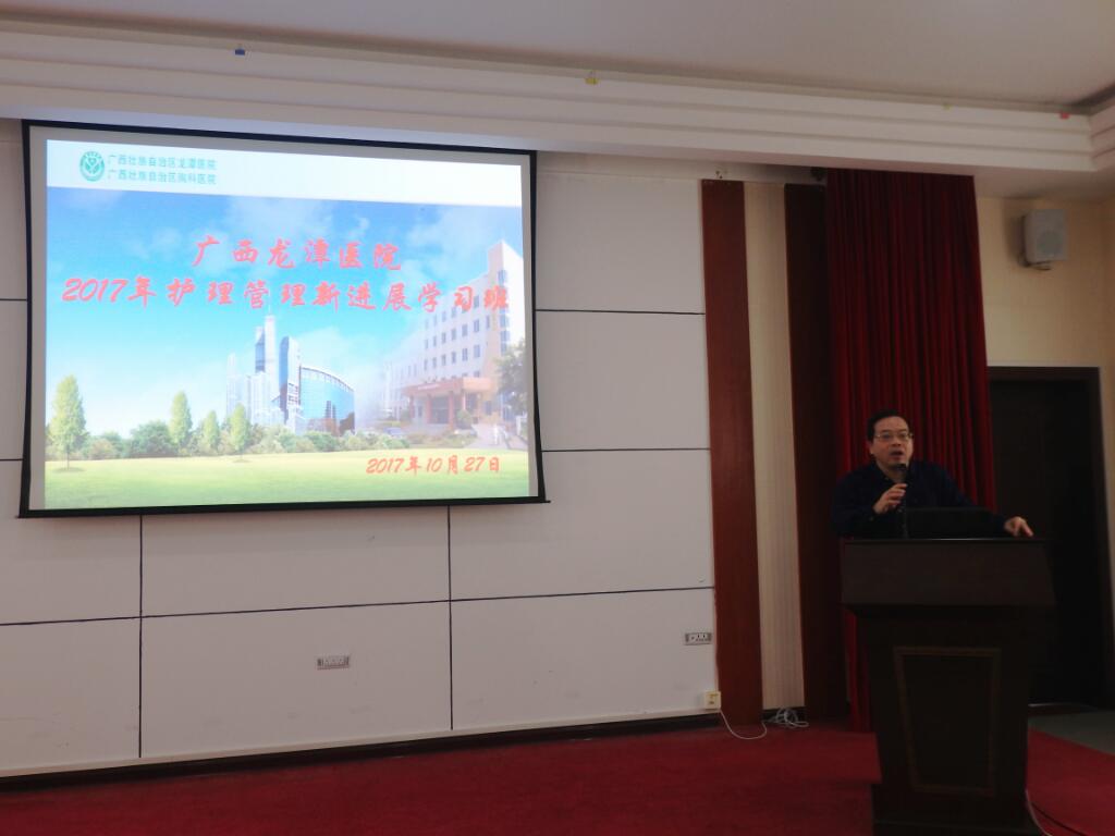 10月27日上午,我院在书香阁三楼会议室成功举办2017年护理管理新进展学习班。院党委书记邓晓军、副院长周兵出席本次学习班并致辞。来自广西龙潭医院分院、医联体医院、柳州市各兄弟单位及我院护理管理者、护理骨干共190人次参加学习班。