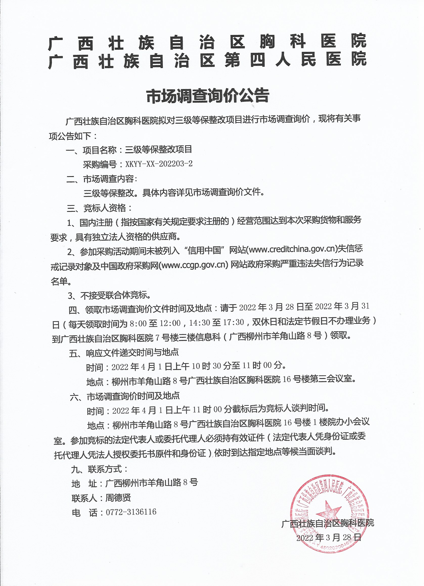 广西壮族自治区胸科医院食堂外包服务采购招标前现场查看,市场调查询价,现将有关事项公告如下:一、项目名称:广西壮族自治区胸科医院食堂外包服务采购(食堂装修改造、设备采购、管理...