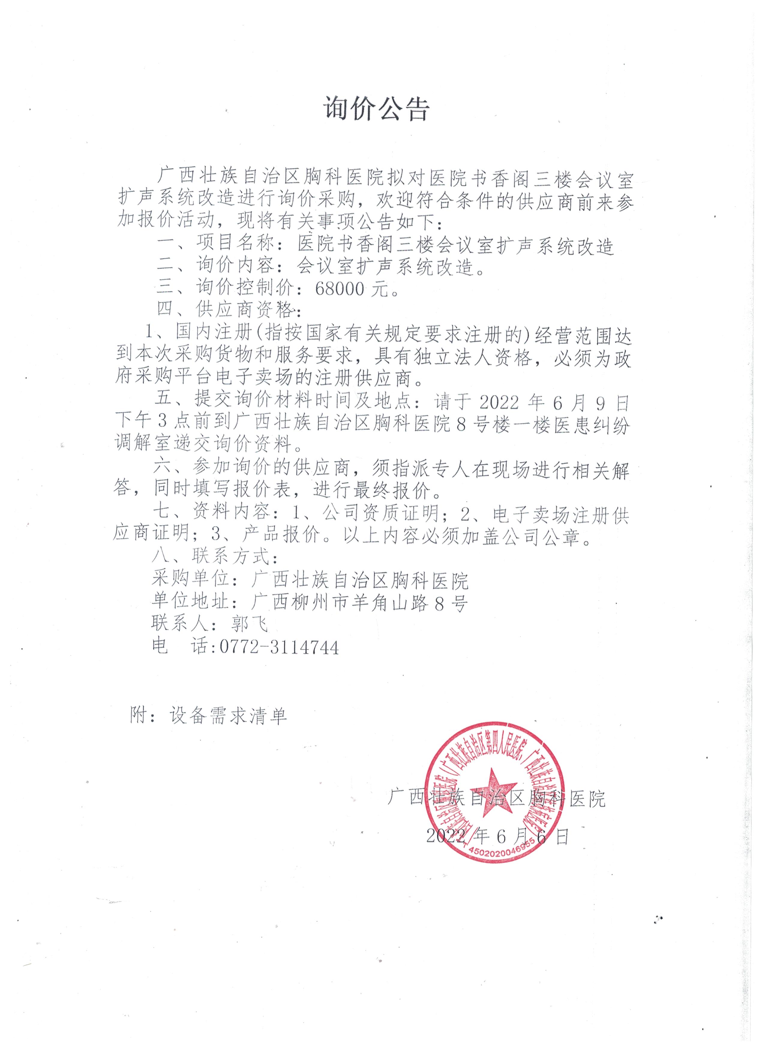 广西胸科医院会议室扩声系统改造设备清单.xls